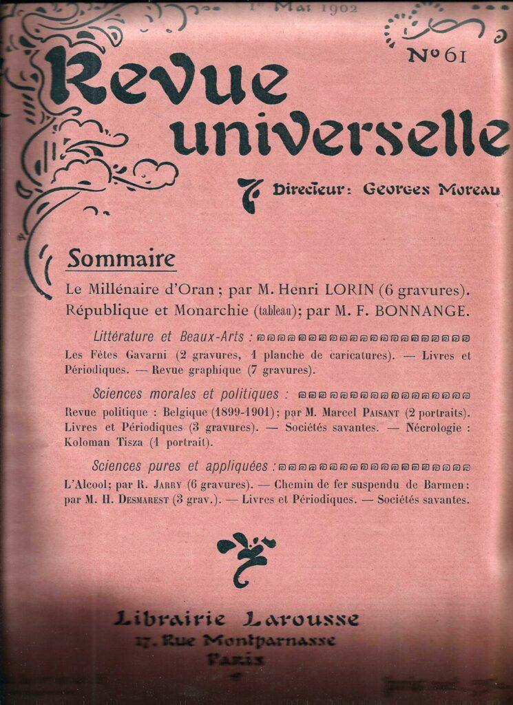 Hier, je publiais la première partie d’un article de Henri Lorin, géographe du début du XX°S qui faisait part, dans la Revue Universelle, des festivités organisées pour le millénaire d’Oran.